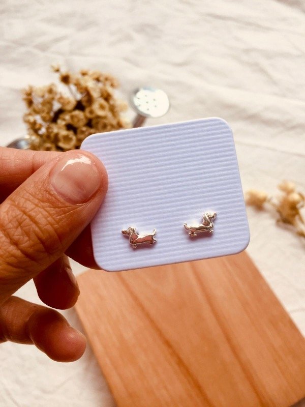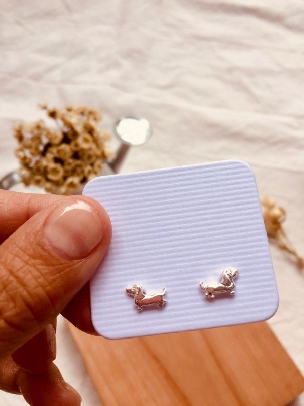 Aros Pasante Mini Perro Salchicha, Plata 925.