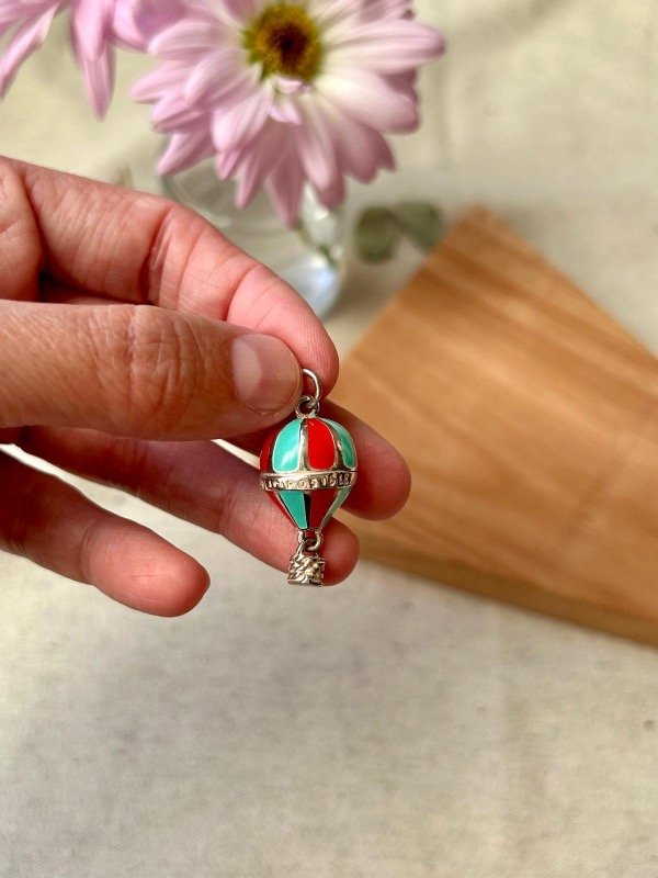 Dije Globo Aerostático Multicolor, Plata 925. Consultar colores en stock antes de realizar la compra. Mide aprox. 2,5 cm de alto (incluyendo canastita).