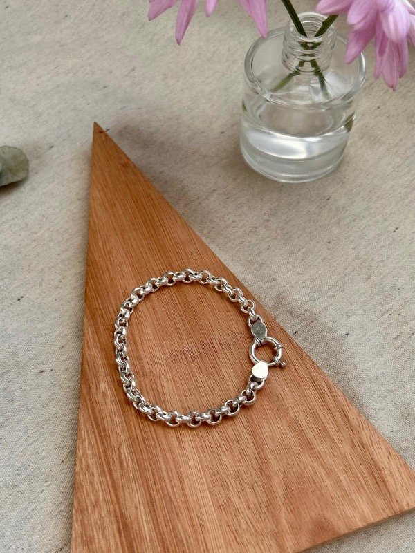 Pulsera Rolo, Plata 925. Mide aproximadamente. 19 cm. No incluye dije.
